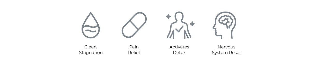 Stimulates blood flow, lymph, and fascia to restore circulation and open blocked areas.
