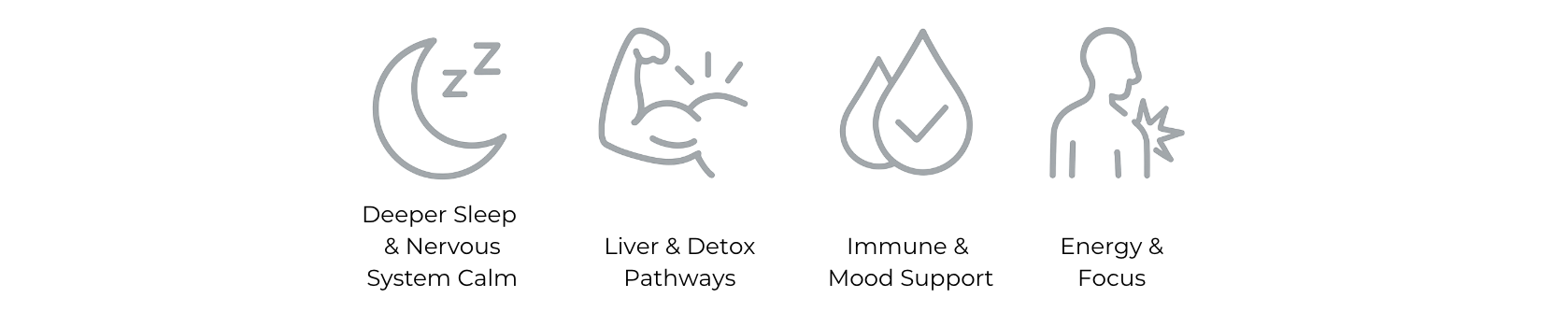 Promotes relaxation, reduces nighttime wakeups, and supports a calmer, more resilient nervous system.
