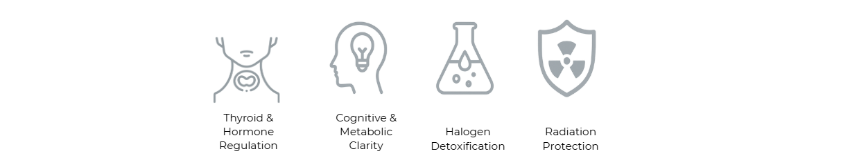 Helps eliminate disruptive halogens like fluoride, chlorine, and bromide that compete with iodine and block cellular function.