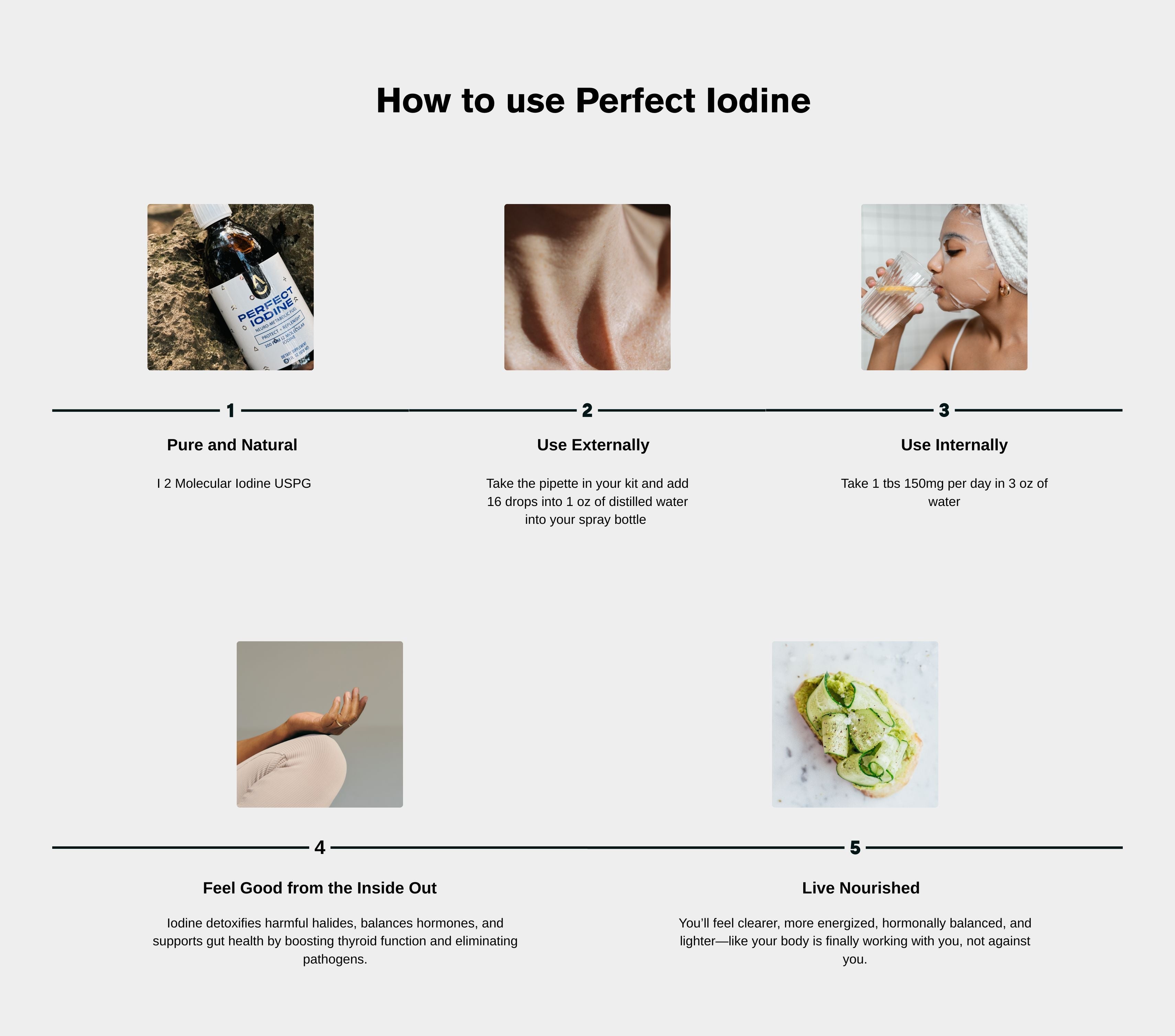 Perfect Iodine is a pure, bioavailable form of iodine—the exact form your thyroid and cells are designed to use. It supports hormone production, detoxification, metabolism, and cognitive clarity. Most people are unknowingly deficient, making iodine one of the most overlooked health essentials.